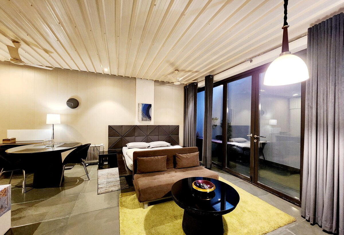 Relax with the whole family and friends at this peaceful place to stay. It’s a well-designed Fully Furnished Studio Independent Apartment(370 sqf). Self-check-in option with locker box. Ready to Use Apartment (3 lifts) with all the best amenities for our premium guests. Our Studio Apartment is outstanding in the society named DLF Capital Greens Moti Nagar. It’s a well-designed furnished cozy studio apartment with an attached washroom with all the ultra-modern amenities, near to Center Delhi