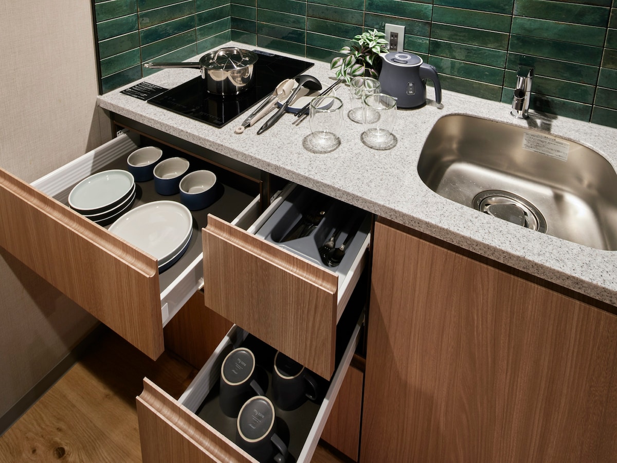 [Endurnýjað í apríl 2024] Íbúðarhótel með eldhúsi | 13,7 ㎡ | Allt að 3 manns