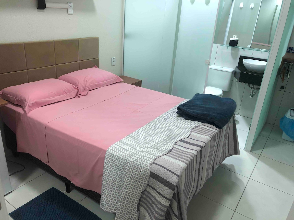 Local aconchegante, Flat totalmente higienizado conforme normas, próximo a verdadeira, mercado, farmácia, 5 minutos do hospital, harmonioso,de boas energias, com toda a privacidade de espaço só seu. Respeito e Bom gosto, estarei sempre por perto para ajudar no que for possível. Estacionamento na porta do apartamento. Monitorado. Privado, Boas camas, bom chuveiro.