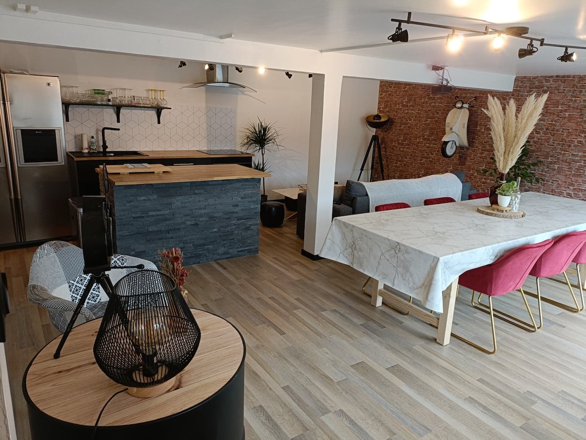Ertu að leita að stað fyrir vinnuferðir þínar, notalegu húsi fyrir fjölskyldustundir eða gistingu með vinum: [Le 8] mun uppfylla væntingar þínar um ánægjulegar og friðsælar stundir í lífinu. Þetta bjarta og hagnýta hús býður upp á þrjú svefnherbergi með hjónarúmi sem eru öll fallega innréttuð og bætt með vinnu- og geymslurými ásamt notalegum stofum þar sem þú getur deilt góðum stundum á þessu fullkomlega uppgerða heimili.