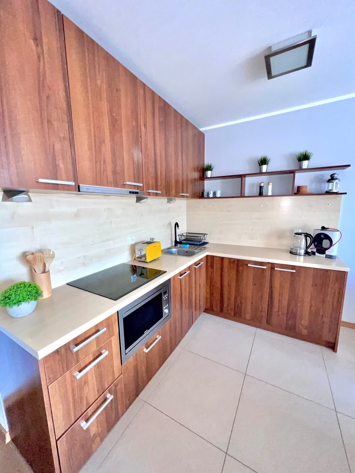 Íbúð (48 m2, 2 hæð) Íbúð á tveimur hæðum á háaloftinu með útsýni yfir sjóinn og vitann í Rozewie. Íbúðin er íburðarmikil og nútímaleg og samanstendur af 3 herbergjum, baðherbergi og tveimur svölum fyrir allt að 6 manns. Frá íbúðinni eru aðeins 300 metrar að ströndinni og 1000 metrar að miðbæ Jastrzebia Gora. Íbúðin samanstendur af tveimur svefnherbergjum - bæði með tvíbreiðu rúmi og einu tvíbreiðu rúmi og eldhúsi (í örbylgjuofni, rafmagnseldavél, tekatli, ísskáp, hnífapörum, bollum og diskum, straubretti, straujárni og sjónvarpi/útvarpi) baðherbergi með sturtu og sjónvarpi/útvarpi (Netið ef beðið er um þráðlaust net 10zł/dag - innborgun 150 zł ) Strandstólar eru afhentir upphækkað bílastæði (öryggi allan sólarhringinn) og skúr sem hægt er að nota fyrir hjól Íbúðin mín býður upp á frábæran en viðkvæman einfaldleika fyrir fyrirtæki okkar, fjölskyldu og frístundir (FALIN vefslóð). Íbúðin er afslappandi og á viðráðanlegu verði. Frábær orka og mjög friðsælt! Einfalt en með allt sem þú þarft. Aðeins kurteisustu gestirnir þurfa að spyrja. Þér er velkomið að senda mér skilaboð ef þú hefur einhverjar spurningar! Heimilið okkar býður upp á yndislega blöndu af borgarlífi og frábærum þægindum á staðnum í einkarými á öruggum og þægilegum stað. Takk kærlega fyrir útsýnið og hafðu það gott í dag!!