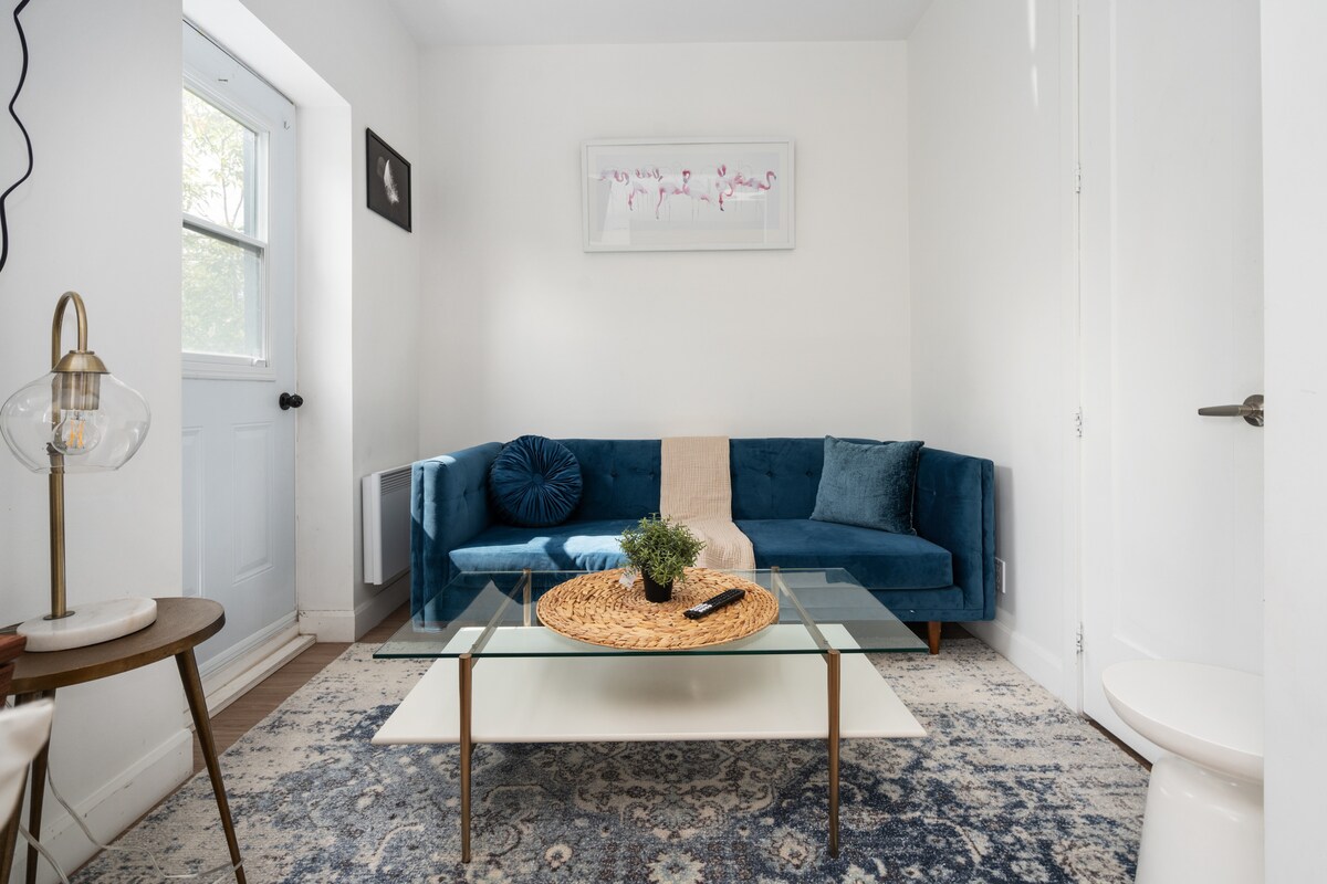 Þessi heillandi 1 svefnherbergis notalega íbúð er fullbúin með harðviðargólfi, sameinaðri stofu / vinnurými og ríkulegu eldhúsi og verönd. Íbúðin er staðsett í Plateau á Saint-Laurent meðfram „The Main“ og er miðsvæðis í fjölmörgum veitingastöðum, börum, kaffihúsum, almenningsgörðum, verslunum, matvöruverslunum og fleiru. Frábær nálægð við flesta helstu viðburði og hátíðir Montreal. Einfalt, hreint, þægilegt og smekklegt. Slakandi frágangur frá degi til að skoða Montreal, með starfsfólki til að aðstoða þig allan sólarhringinn.
