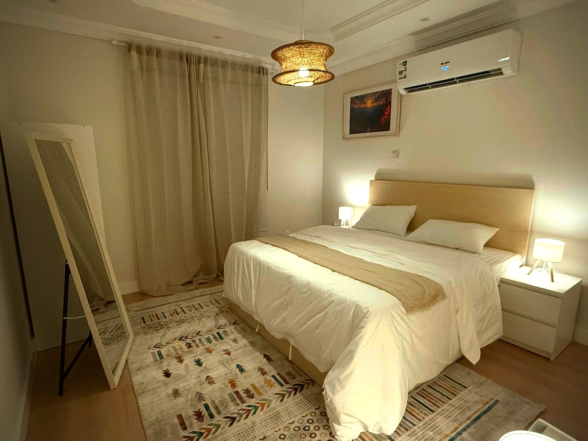 Gaman að fá þig í fullkomnu íbúðina þína í Jeddah! Njóttu nútímalegrar dvalar í glæsilegri svefnherbergisíbúð, stofu og eldhúsi , með snjöllum inngangi, á framúrskarandi stað nálægt sjónum, í nokkurra mínútna fjarlægð frá Al Razsi Mall, Formula Circuit og Corniche Walk. Eiginleikar: • Skref í burtu frá Corniche og sjónum • 18 mín akstur á flugvöll • 1 mín. akstur til Al Razsi Mall og Dóná • 3 mínútur í Formúlurás • 8 mín akstur að Yacht Club Njóttu notalegrar dvalar í hjarta líflegrar borgar!