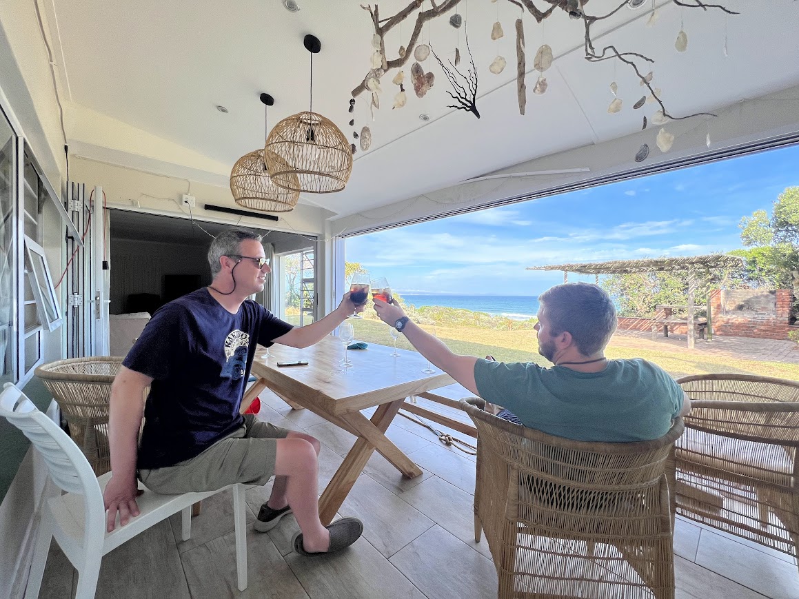 Í fyrsta sinn sem við gengum upp stigann og sáum Jeffrey 's Bay teygja sig fyrir framan okkur og hjarta okkar söng. Eftir tíu ára drauma og tveggja ára skipulagningu bjuggum við loks til nútímalegt strandhús við brimið. 127 de Gamma er byggt með evrópskum stíl en afrísku hjarta. Þó að svefnherbergin séu niðri snýst opið um útsýnið. Með áframhaldandi sögu af loadshedding höfum við bara bætt við sól og inverters til að tryggja að þú hafir mikla streitufrjálsa dvöl.