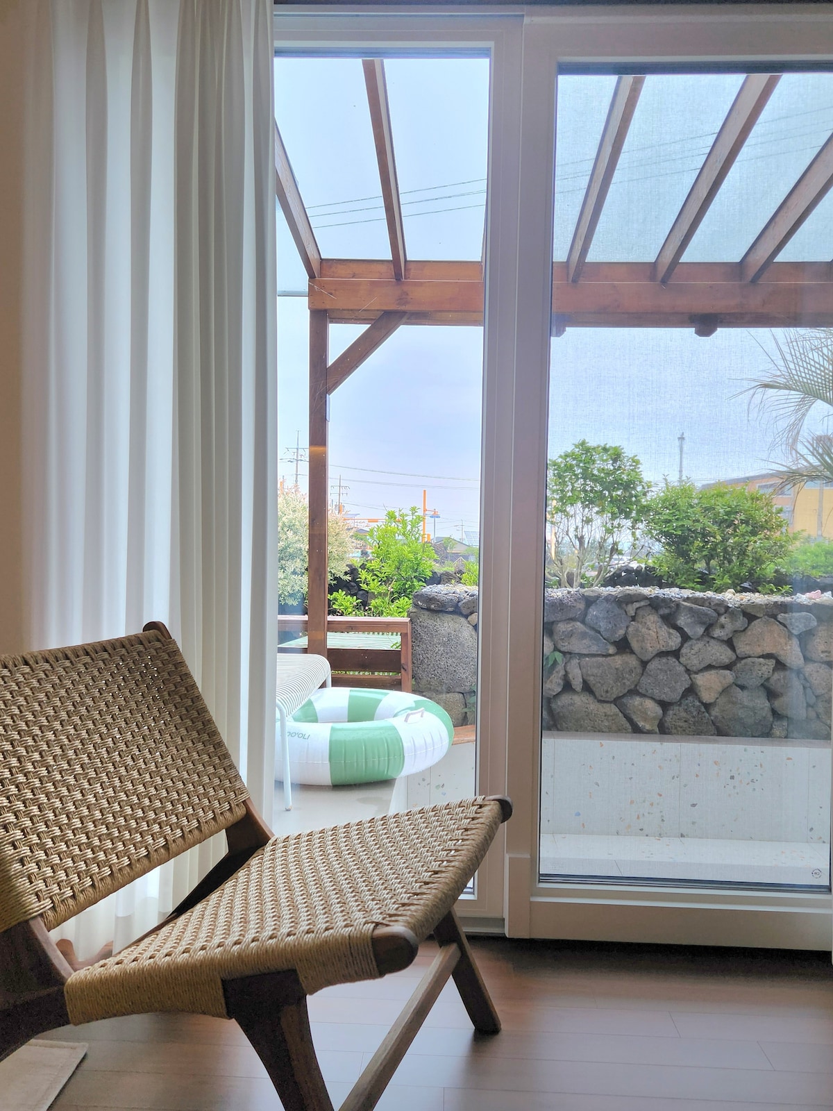 Þetta er gistirými með fjögurra árstíða heitum potti sem samanstendur af steinveggjagarði í Jeju og hlýlegu viðartónuðu herbergi til að lýsa náttúru Jeju-eyju. 1 rúm í king-stærð á 1. hæð og 1 rúm í queen-stærð á háaloftinu (aukarúmföt í boði) Það eru frægir veitingastaðir og kaffihús eins og London Bagel og Montan í innan við 5 mínútna göngufjarlægð. Þetta er ókeypis heitur nuddpottur sem hægt er að nota án endurgjalds, jafnvel þótt það rigni, og hann er af stærð sem 4-6 fullorðnir geta notað, svo að þú getir notað hann á öruggan hátt eins og sundlaug fyrir ungbörn/smábörn. (Ungbarna- og smábarnavörur án endurgjalds: ungbarnarúm. Borðstofustóll, mjólkurpottur, túpa, baðker) Sjávarútsýni yfir háaloftið er einnig uppáhaldsrými gesta. Ókeypis hleðslustöð fyrir rafbíla/einkabílastæði á staðnum Grill og eldstæði eru einnig í boði í garðinum og það er aðskilin viðbótarfjárhæð. Basic occupancy 2 adults (20.000 KRW per additional person per night) 4 adults max