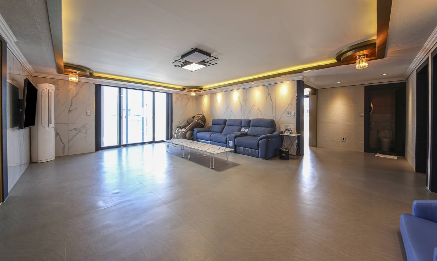 Þetta er 50 pyeong þakíbúð. Þetta er snyrtilegt rými sem samanstendur af 3 herbergjum, rúmgóðri stofu og 2 baðherbergjum og er vel búið grunnþægindum. • Búin herðatrjám og loftræstingu sem veitir notalegt umhverfi. • Þvottavél er til staðar og þar er einnig eldhús. Það er örbylgjuofn. Þar er kaffikanna og vatnshreinsir. Það er erfitt að elda (þetta er hótel) • Þú getur haft það notalegt með kælingu á sumrin og kyndingu í katli á veturna. • Sjónvarp og net (WiFi) eru uppsett svo að þú getir notið frítímans þegar þér hentar. Þetta er hópherbergi sem rúmar að hámarki 16 manns eða fleiri.