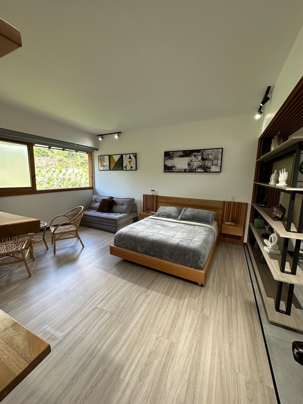 Nútímaleg íbúð með fjallaútsýni, tilvalin fyrir tvö pör og allt að 6 gesti. Þar eru 2 sjálfstæð svefnherbergi, einkavinnustofa með skrifborði og tvíbreiðum svefnsófa, 2 baðherbergi, fullbúið eldhús og hröð WiFi-tenging. Staðsett á rólegu og öruggu svæði aðeins 4 húsaröðum frá aðaltorginu. Ókeypis bílastæði fyrir framan bygginguna og ókeypis staðbundið kaffi með 4 bryggðaraðferðum. Fullkomið til að slaka á eða vinna í Jardín.