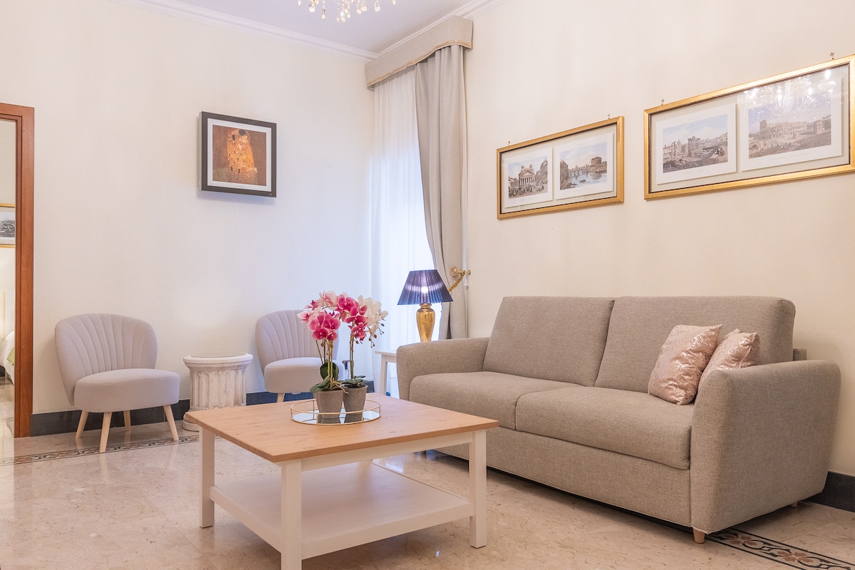 Kynnstu Róm frá heillandi íbúð okkar í Prati-hverfinu, í 10 mínútna fjarlægð frá miðbænum. Hún hefur nýlega verið enduruppgerð og býður upp á nútímalega hönnun með einstökum smáatriðum eins og plöntuvegg og skjá. Tilvalið fyrir fjölskyldur eða hópa, með 2 svefnherbergjum og 2 baðherbergjum, rúmar það allt að 4 manns í fersku og björtu umhverfi. Njóttu ósvikinnar upplifunar í borginni sem aldrei sefur!
