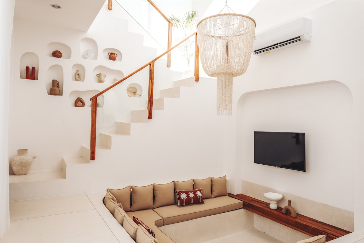 Casa Cherish er staðsett í hjarta Canggu. Þessar fallegu villur eru í nokkurra mínútna fjarlægð frá bestu kaffihúsum, restos og frægum ströndum Canggu. Njóttu lífsins og slakaðu á í þessari fallegu 2 BR-villu sem er innblásin af Miðjarðarhafinu sem verður fullkominn valkostur fyrir fríið á Balí. Villurnar eru með nútímalegri, bjartri og flottri hönnun frá miðjarðarhafinu og glæsilegri innréttingu með stofu innandyra sem getur hjálpað þér að slá hitann á Balí. **Vegna framkvæmda í nágrenninu bjóðum við eins og er afsláttarverð á villunum okkar.**
