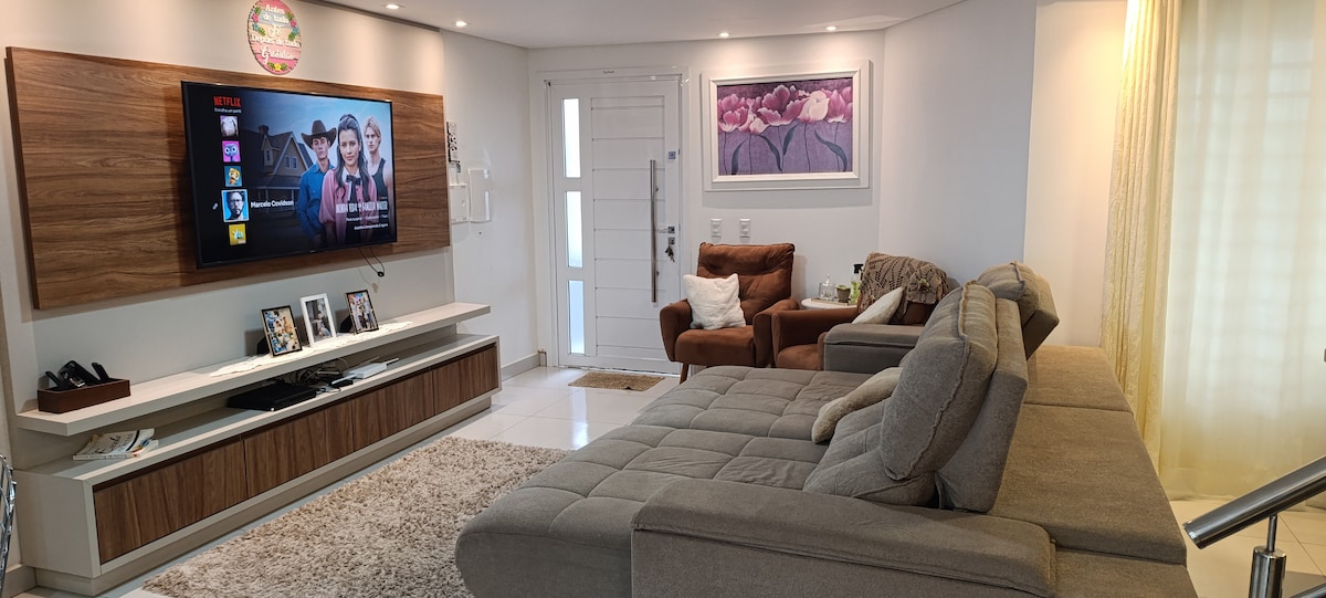 Complete apartment in the city center, close to markets, cinema, restaurants and shops. Less than 5 minutes from the sea! 😃 The apartment has a bedroom, living room, bathroom and kitchen/utility area, fully furnished and ready for use. In the living room, the apartment has a double-size sofa bed. Sea views from both the apartment and the terrace, which has a swimming pool, gym and leisure area. Also includes TV with Netflix and other streaming services (not included), barbecue and garage