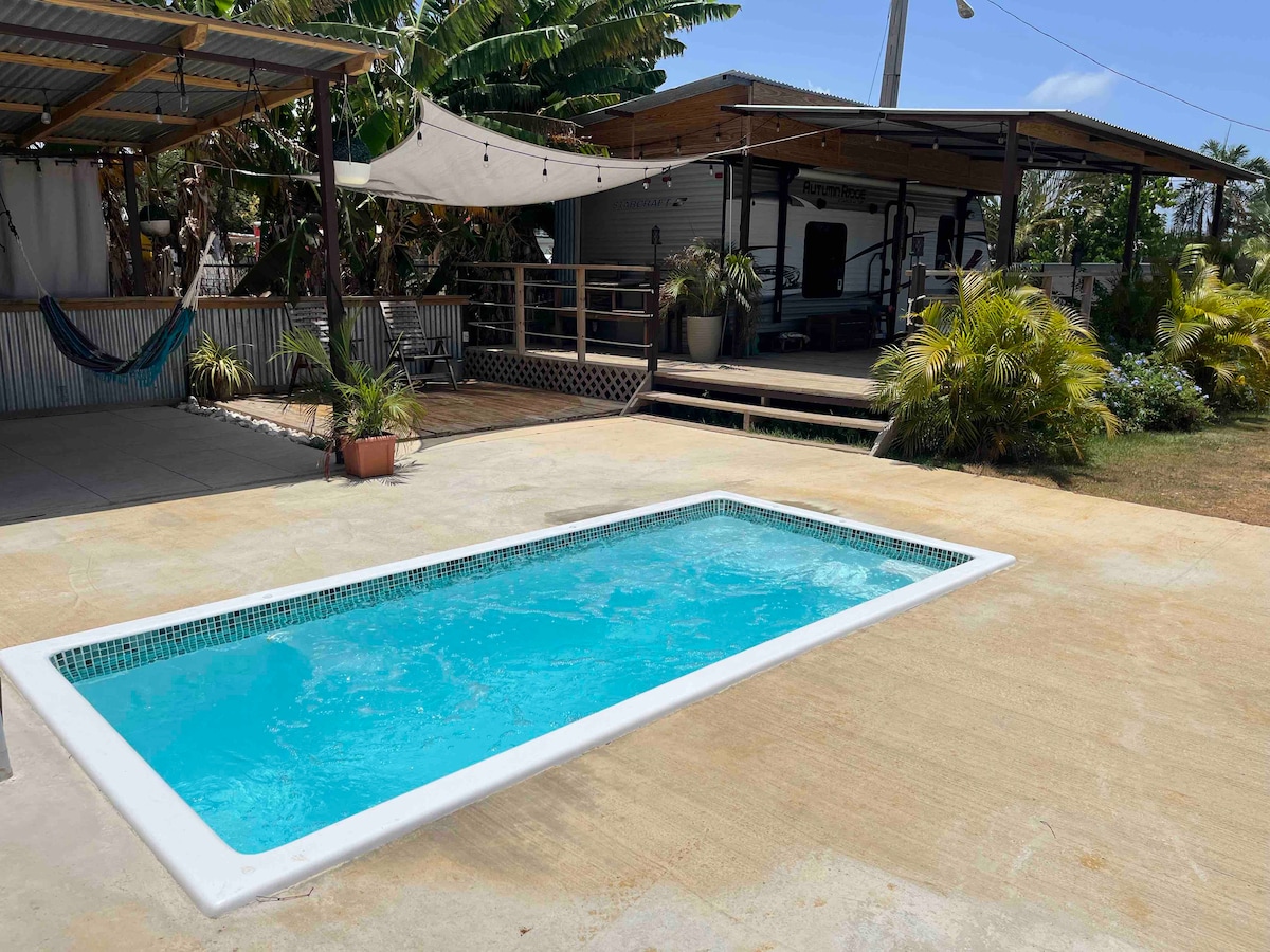 Uppgötvaðu fullkomið frí á „El Camper“, heillandi húsbíl við kyrrlátt innra húsasund við þjóðveg 110 í líflega bænum Aguadilla. Þetta notalega athvarf er hannað fyrir afslöppun og eftirminnilegar upplifanir og býður upp á allt sem þú þarft til að slaka á og skoða það besta sem almannatengslin hafa upp á að bjóða. El Camper sameinar þægindi og náttúruna með hlýlegu og notalegu andrúmslofti umkringdu öruggri girðingu og úthugsað með náttúrulegum hlutum. Njóttu ýmissa þæginda sem eru hönnuð fyrir afslöppun og skemmtun.