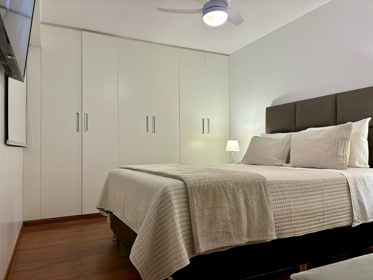 Boutique art loft near Kennedy Park with a king bed and private green balcony. A calm, thoughtfully designed retreat in the heart of Miraflores—ideal for short city stays or relaxed getaways. Walk to cafés, top restaurants, shops, and the oceanfront, then return to a quiet, light-filled space designed for rest, comfort, and privacy, with curated art and soft ambient lighting.