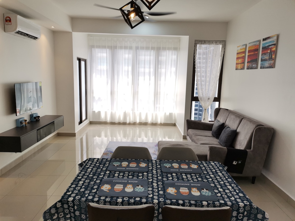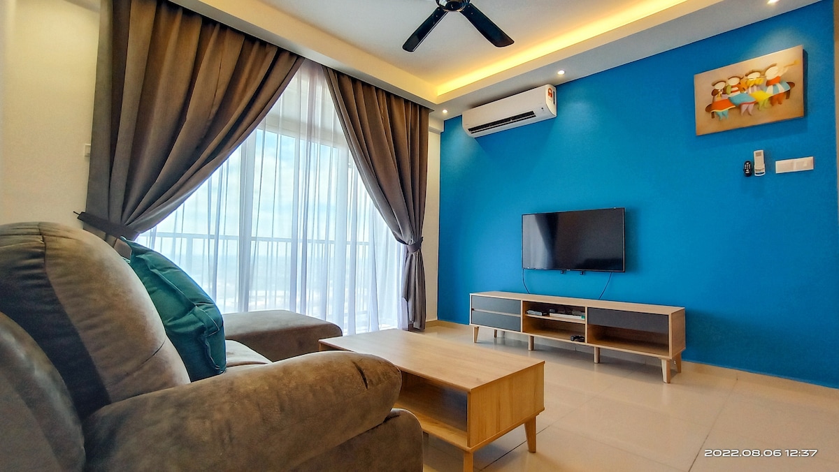 How many pax can stay here: Apartment can accommodate 4 pax and still comfortable for 6 pax. It's located in the heart of Melaka City and just 3 km away from historical building A'Famosa and Studthuy's Building. Facilities: Provide FREE parking lot for 1 car at level 2. Others can park at the ground floor. List of amenities that provided within the house: This stylish apartment also come with 2 queen-size beds & 1 queen-size foldable sofa bed, 1 extra toto, 60" LED android TV, WI-FI, etc.