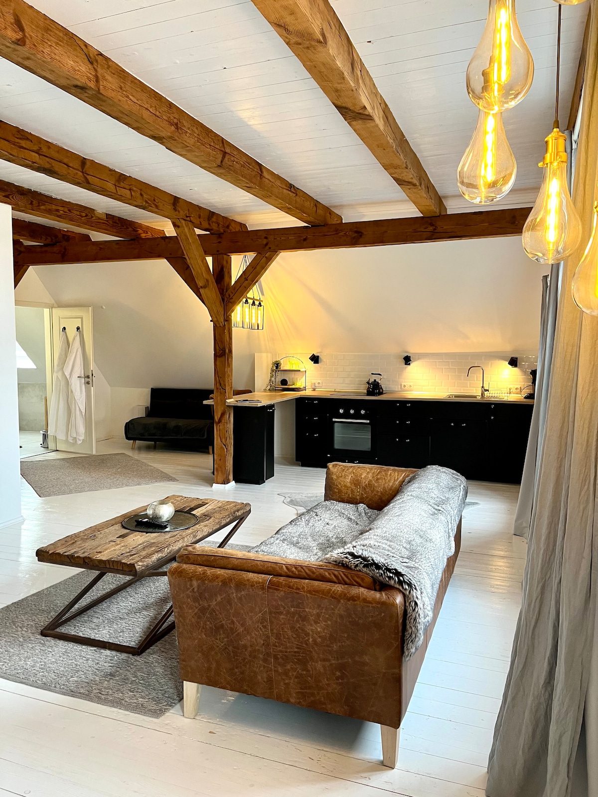 Upplifðu sjarma skráðrar byggingar frá 1859 sem var nútímavædd af mikilli ást á smáatriðum. The 36 sqm apartment in the former machinist house of the waterworks offers stylish flair and contemporary comfort. Staðsetning: Umhverfið er staðsett beint við Elbe-ströndina og býður þér að fara í göngu- og hjólaferðir. Nálægð við Falkensteiner-ströndina veitir beinan aðgang að Elbe og býður upp á stórkostlegt útsýni yfir skipin sem fara framhjá.