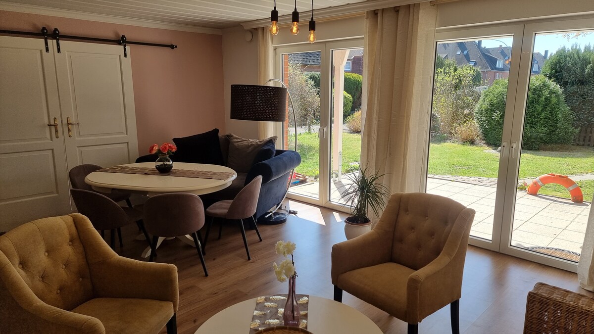 Verið velkomin á „Kirschpfad zur Lühe“ – heimili þitt í Altes-landinu. Njóttu kyrrlátra daga í ástríkri íbúð í sveitastíl beint við Lühe. Innkeyrslan er full af kirsuberjatrjám. Íbúðin heillar með hlýjum kirsuberjaviðarhúsgögnum og sláandi viðarstólpa sem gefur herberginu persónuleika og notalegheit. Þú finnur gönguferð um leðjuna, kyrrð, sjarma og sérstakt andrúmsloftið í norðri.