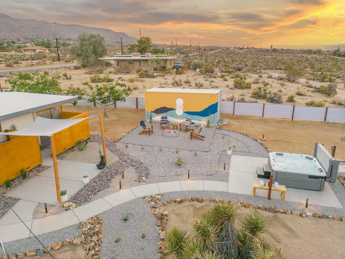 Þetta nýbyggða heimili á 10 hektara landsvæði er staðsett á toppi Mesa og býður upp á fallegt útsýni yfir þjóðgarðinn á daginn og leggur áherslu á hina miklu Vetrarbraut að kvöldi til. Slakaðu á í tvöföldum inniskóm og horfðu út í hafið af Joshua Trees eða njóttu eyðimerkurhiminsins á bakveröndinni á meðan stjörnurnar svífa yfir höfuðið. Ef þú ert að leita að afdrepi fjarri fjöldanum en samt nálægt öllu því „skemmtilega“ sem Joshua Tree og Yucca Valley hafa upp á að bjóða þarftu ekki að leita lengra en til Ladera House.