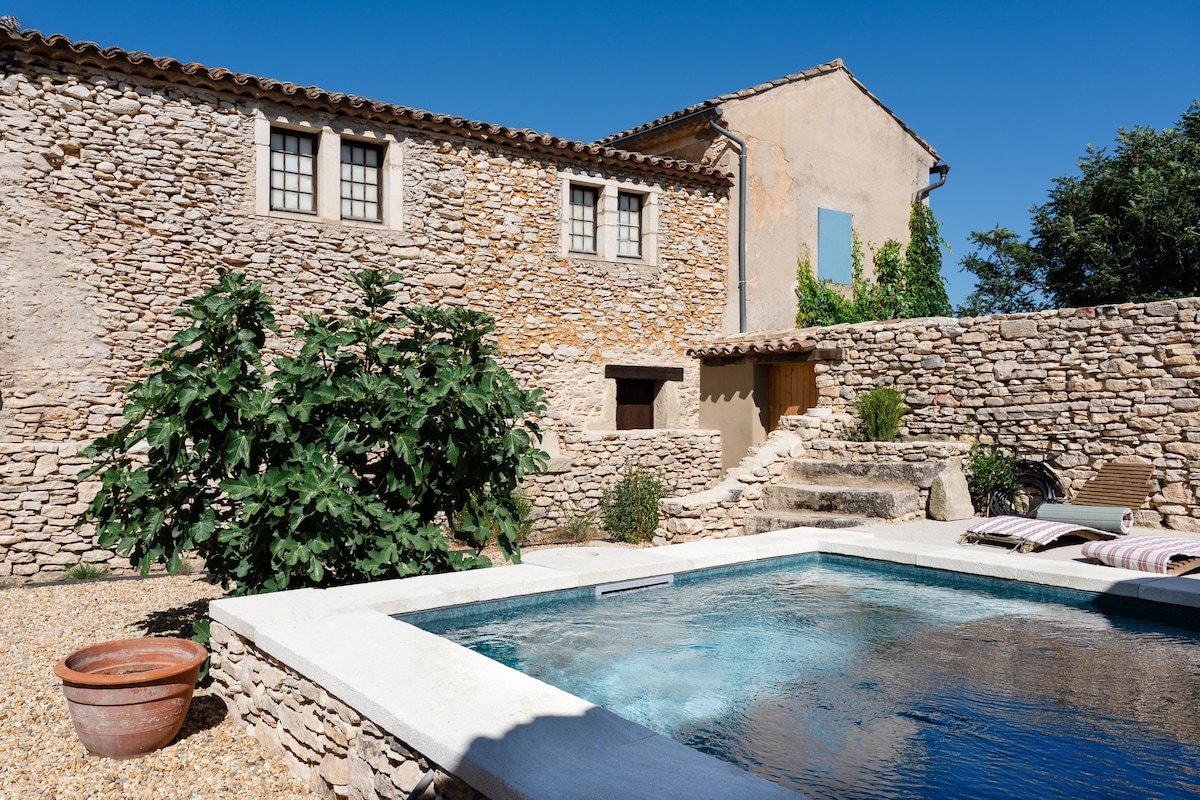Superb Mazet of 65m2 located only 5min from Gordes. Þessi eign, sem hefur verið endurnýjuð að fullu, staðsett í hjarta lítils þorps, gerir þér kleift að eiga notalega stund. Það samanstendur af tveimur tveggja manna herbergjum, einu gott baðherbergi með salerni og vatnsstað og salerni uppi. Eldhúsið er fullbúið og gefur suðurhlið á afskekktum garði með fallegri sundlaug. Þú munt einnig hafa húsagarð norðanmegin. Algjör hamingja og hvíld! IG: Mazet_des_gardiols