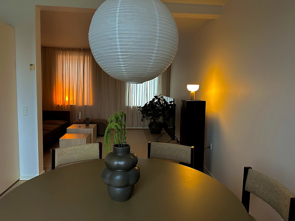 Íbúðin er 65 m2 með stóru herbergi sem er sameiginleg í svefnaðstöðu og stofu með hjónarúmi 2 m x 1,60 og svefnsófa, 1,90m x 1,40. Auk þess er aðskilið svefnherbergi með rúmi 2m x 1,20m. Í stofunni er borðstofuborð og skrifborðsstóll og ýmsir stólar, sófaborð. 40" sjónvarp. Eldhús með ísskáp og frysti, örbylgjuofni, hitaplötu, pottum, brauðrist, hraðsuðukatli, kaffivél og diskum fyrir 6 manns. Hratt þráðlaust net. Einkasalerni og sturta. Þvottaaðstaða í kjallaranum.