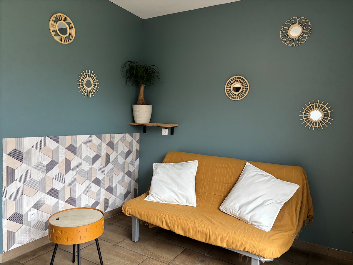 Heillandi hús alveg uppgert , hljóðlátt , bjart með þráðlausu neti sem opnast út á stóra verönd og lokaðan garð, þægilegt, tilvalið fyrir par/2 börn eða 3/4 fullorðna . Á jarðhæð er opið rými með stofu 2 svefnsófum, sjónvarpi, borðstofu og fullbúnu eldhúsi. 1 wc, handþvottavél. Á efri hæðinni er þægilegt lítið svefnherbergi undir þökunum með útsýni yfir veröndina ,rúm 190 x 140 cm,sjónvarp, fataherbergi og geymsluskápur,lítið baðherbergi með sturtu, gluggavaskur og 1 salerni. VMC