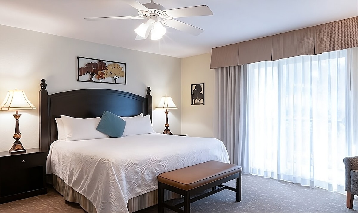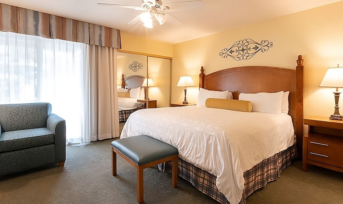 This room features a Queen bed, desk space, and seating. Enjoy high-end amenities, complimentary WiFi, hair dryers, robes, and more. Each room showcases unique furniture and decor, while select rooms offer private balconies. Convenient access to our inviting Great Room and outdoor patio spaces with stunning views awaits.