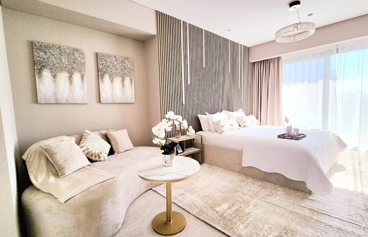 Sjálfsinnritun sem er opin allan sólarhringinn! Verið velkomin til La Vie Residences, einkarekins lúxusafdreps við ströndina í líflegu Jumeirah Beach Residences (JBR), Dúbaí. Þessi glæsilega íbúð með 1 svefnherbergi býður upp á einstaka blöndu af fáguðu borgarlífi og friðsælum strandstaðaupplifunum. Fullkomið fyrir einstaklinga, litlar fjölskyldur og pör sem vilja ógleymanlega dvöl. Þú munt sökkva þér í nútímalegan lúxus með snurðulausum aðgangi að ástsælustu stöðum JBR.