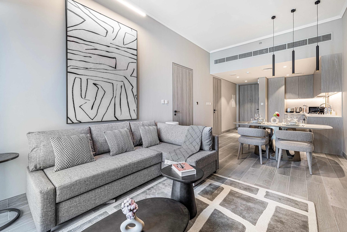 Settle into a bright and modern 1-bedroom apartment located in the heart of JVC, Dubai. Ideal for individuals, couples, or small families, the space is arranged for comfort with a relaxed living area and a well-equipped kitchen, with in-home entertainment and premium amenities throughout. It suits both business and leisure travel, staying close to neighbourhood dining, cafés, and daily essentials while returning to a serene space at the end of the day.