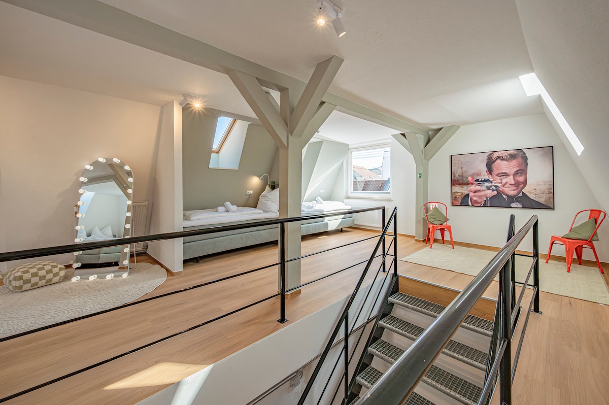 Verið velkomin í Penthouse of Heroes Klifraðu upp á topp – 250 m² á tveimur hæðum fullar af frelsi og borgarlegu yfirbragði hátt yfir þökum Hamborgar. Hvort sem þú ert með áhöfn, fjölskyldu eða viðskiptateymi munt þú njóta víðáttumikils útsýnis, rýmis og fullkominnar staðsetningar fyrir verkefnin þín.