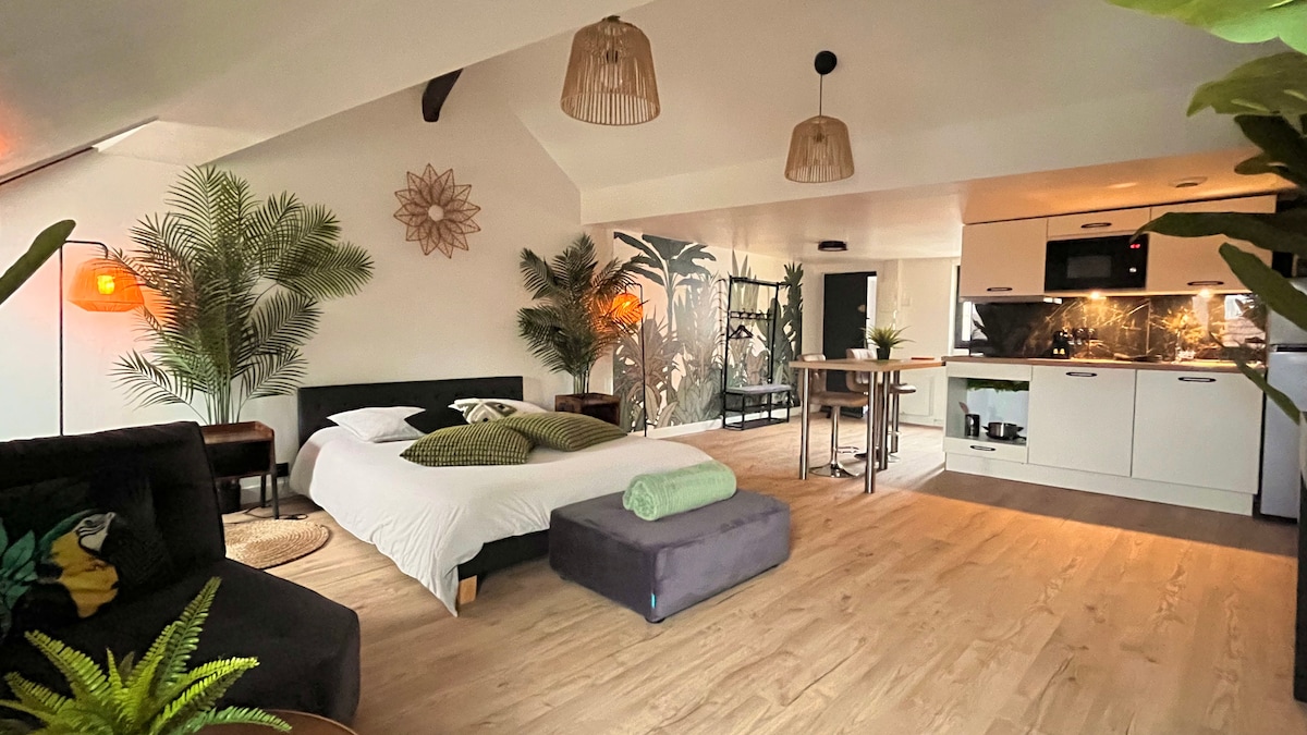 Offrez-vous une parenthèse hors du temps dans ce studio voûté en pierre, entièrement rénové et décoré avec soin. Pensé pour le confort et la détente, il dispose d’une balnéo privative, d’un lit confortable et d’une ambiance chaleureuse. Situé à 40 minutes de Paris, ce logement est parfait pour un week-end en amoureux, une escapade romantique ou un séjour bien-être. Alliant authenticité des pierres apparentes et équipements modernes, ce cocon offre une expérience unique et reposante..