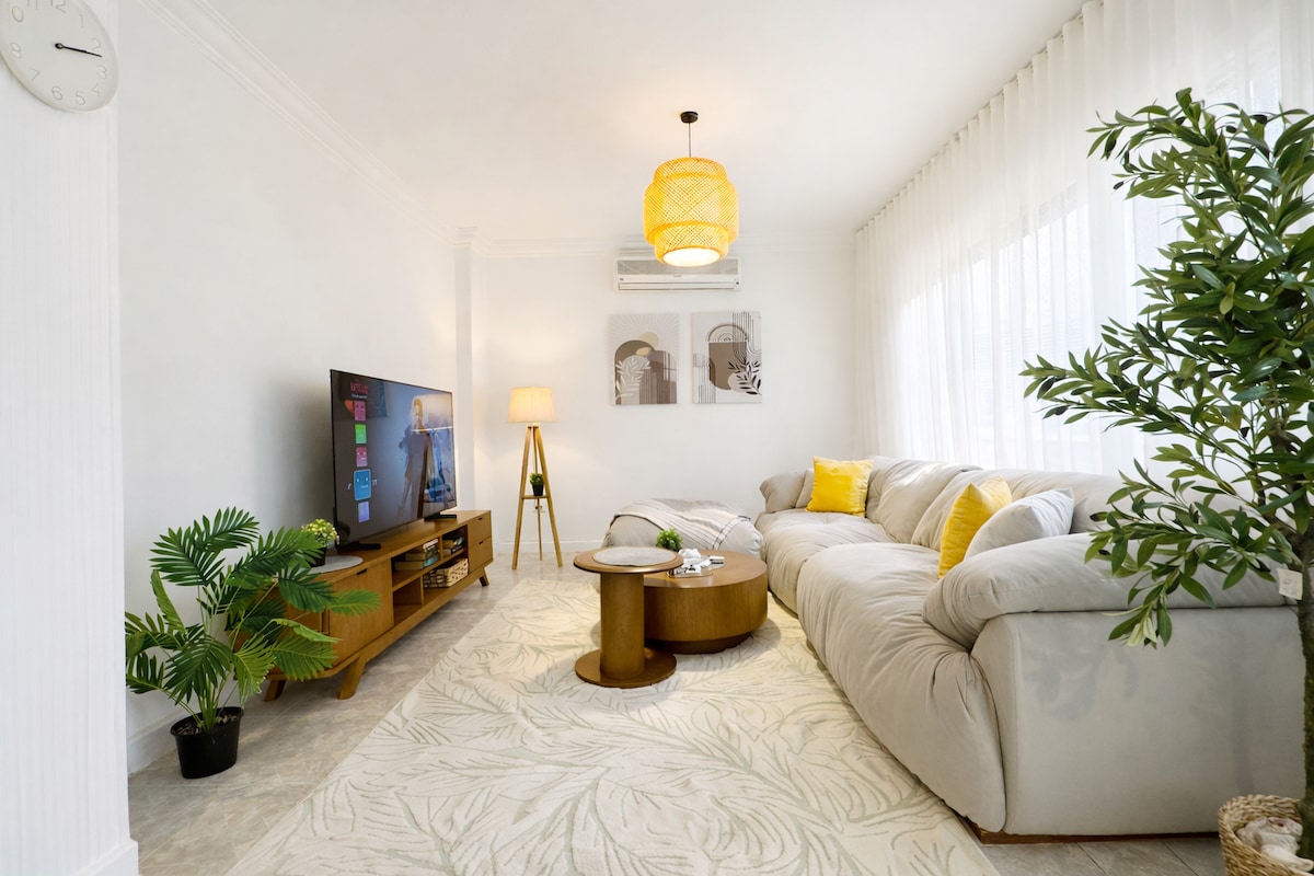Ertu að leita að eign með aðeins meira plássi til að anda að þér? Þú nýtur verndar þessarar 2BR íbúðar. Þetta er ekki bara eignin heldur öll upplifunin! Hefðbundið fyrir sítrónurými: - Hratt þráðlaust net - Aðgangur að lykilkorti -Faglega hreinsað - Fullbúið eldhús -Fersk handklæði -24/7 Aðstoð -Mikið móttökusett -Tvísk þrif í viku -Þægileg rúmföt -Sturtuþægindi Þægindi Í byggingunni: - Sameiginleg verönd - Móttaka - Lyfta