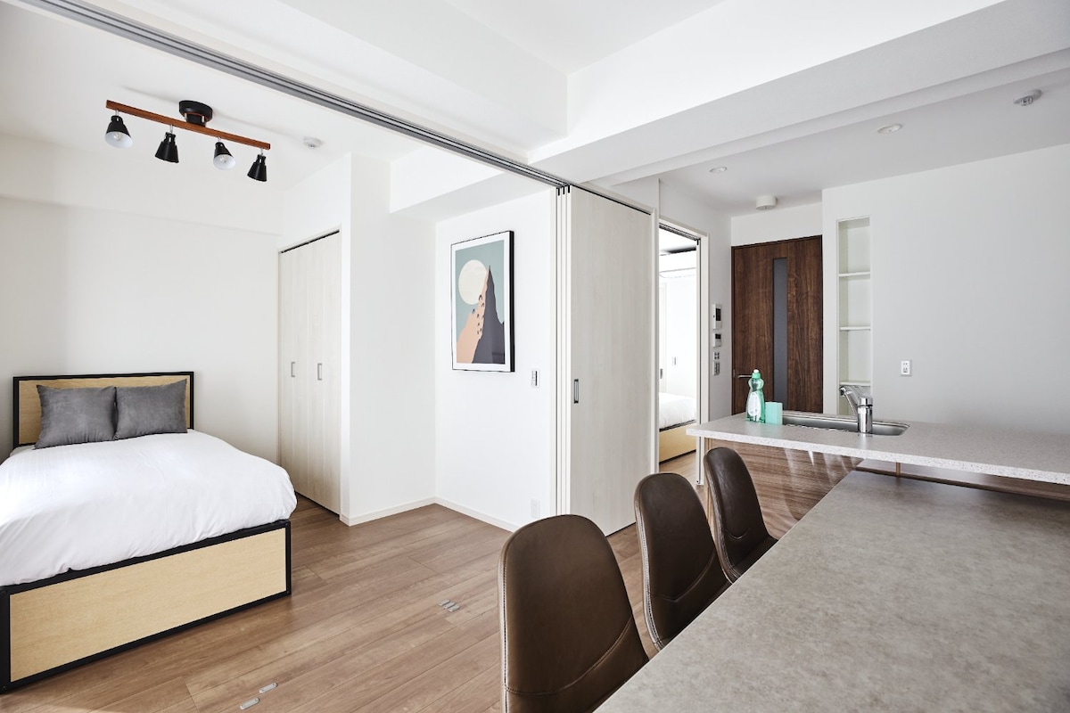 2 mínútna göngufæri frá næstu stöð / 2 línur 2 stöðvar í boði / B1-1F herbergi með tvíbreiðu rúmi / bv God a05