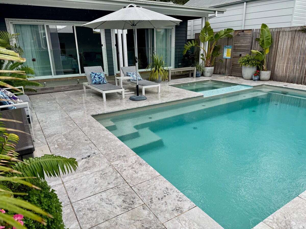 Yndisleg, einkarekin íbúð með: ✔️ Central reverse cycle air-con ✔️Svefnherbergi í queen-stærð með vönduðum dýnum og rúmfötum ásamt setusvæði með útsýni yfir sundlaugina og runna. ✔️pottar, pönnur, áhöld og nauðsynjar fylgja ✔️sæti á eldhúseyjunni eða við borðstofuborðið ✔️upphitaður handklæðaofn á baðherbergi ✔️þvottavaskur, þvottavél og þurrkari ✔️stofa með tveggja sæta setustofu og stöku stól. ✔️loftviftur og útiloka gluggatjöld ✔️ einkaverönd með rólusæti