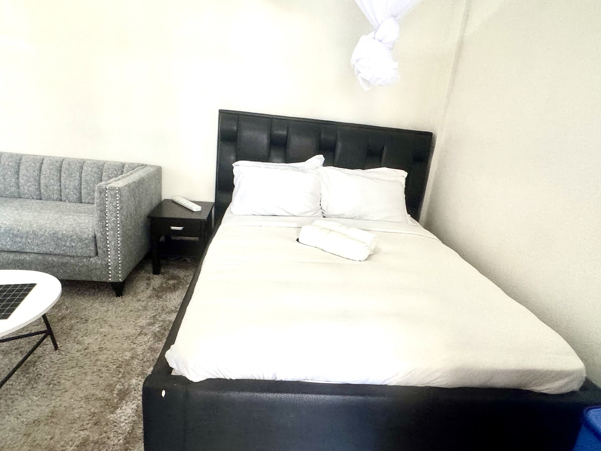 Slakaðu á með allri fjölskyldunni á þessum friðsæla gististað í Kakamega Town og við hliðina á kakamega airstrip, þarftu ekki að leita lengra? Við erum með fullbúin hús með 1 svefnherbergi sem hægt er að bóka. Auðvelt aðgengi og um 3 mínútna akstur til Kakamega Town og flugbrautarinnar . Þægindi; ✓ Þétt öryggi ✓ Næg og örugg bílastæði ✓ Sterkt og stöðugt ÞRÁÐLAUST NET ✓ Nútímalegt eldhús. ✓ Rúmgóð og ofurhrein herbergi. ✓ Kyrrlátt umhverfi Á viðráðanlegu verði fyrir gistingu bæði til lengri og skemmri tíma