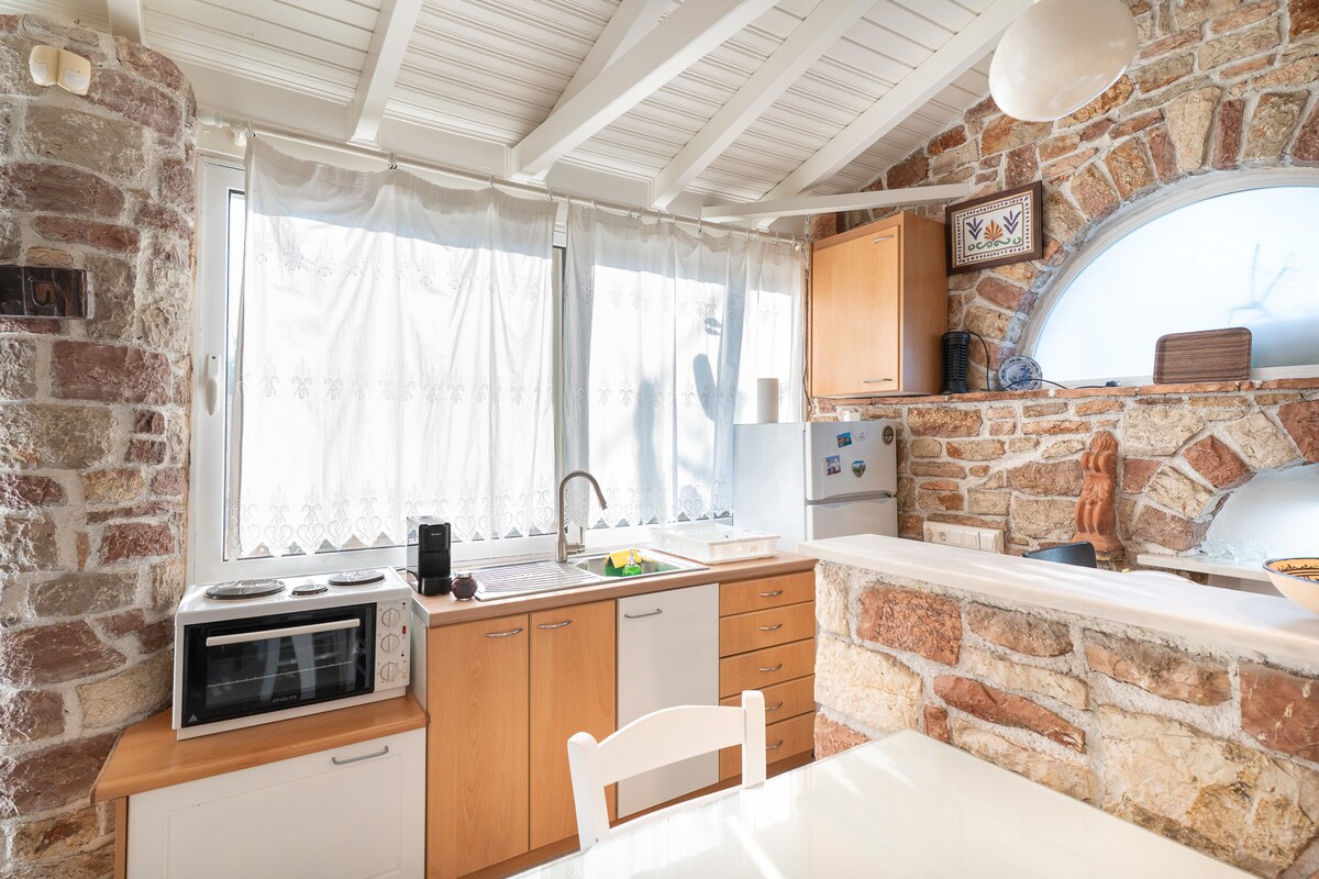 Húsið er staðsett nálægt Velika Beach, 100m frá sjó,aðeins 2 mínútna göngufjarlægð. Ströndin okkar er enn hrein mey án þess að vera fjölmennur af fólki. Við hliðina á húsinu,aðeins 2 mínútur að ganga, er lítil fjölskylda taverna býður upp á ferskan fisk og staðbundinn mat. Staðsetningin er mjög þægileg þar sem aðeins er 15 mínútur (akstur) frá flugvellinum í kalamata, 20 mínútur frá kalamata miðju, 30 mínútur frá Koroni, Pylos, 30 mínútur frá Ancient Messini. Auk þess er hægt að versla eða setja bensín í þorpinu