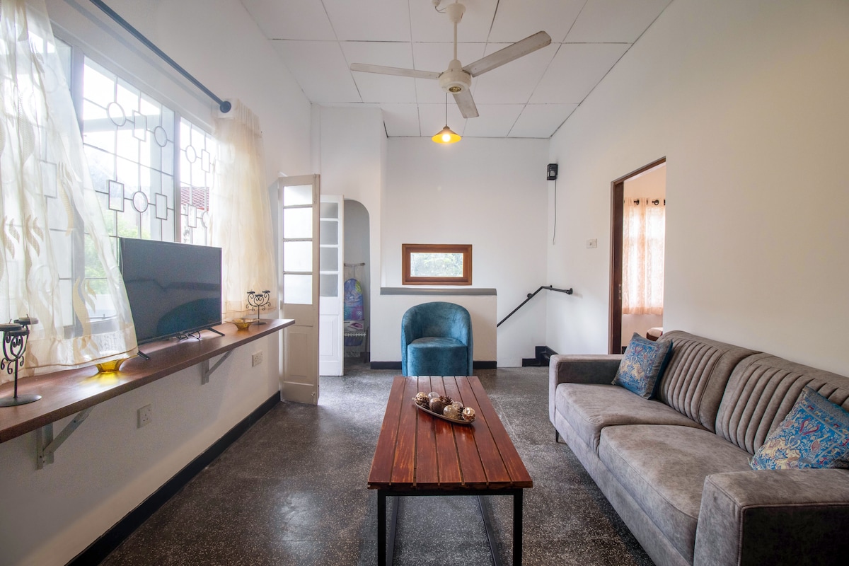 Falleg íbúðareining sem hentar vel fyrir þægindi og afslöppun fyrir allt að fjóra gesti. SLTDA skráð. Það er við Beach Road, Mount Lavinia, í 100 metra fjarlægð frá hinni frægu Mount Lavinia Beach. Allar verslanir, bankar, veitingastaðir eru í göngufæri. Íbúðin er með 2 svefnherbergi með loftkælingu, eitt baðherbergi, stofu með eldhúsi og borðplássi og stórar svalir. Það er á 2. hæð heimilis okkar með aðgengi gesta í gegnum ytri stiga innan eignarinnar. Gestgjafar eru alltaf til taks á jarðhæðinni.