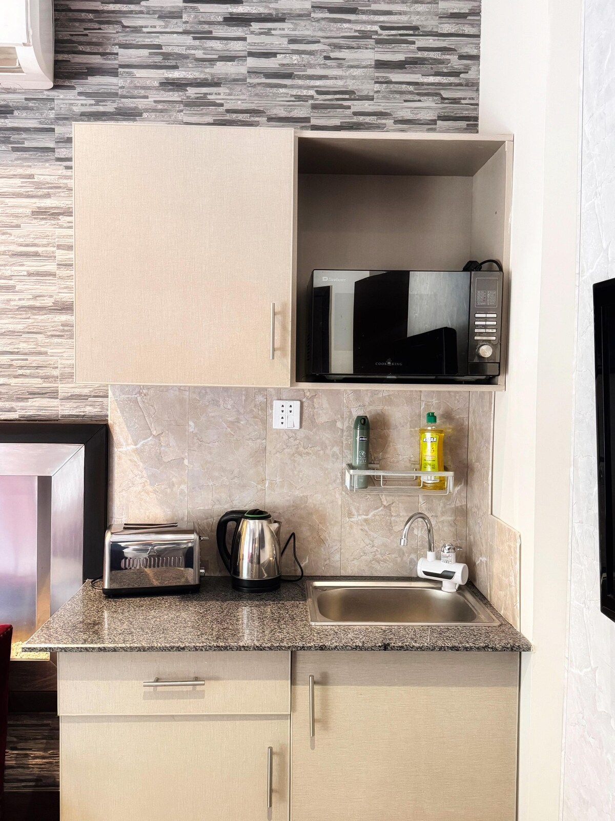 1 BHK Orbit Penthouse í DHA Phase 5 er þar sem borgarflottleiki og himnesk kældni mætast. Ímyndaðu þér: Ljómandi tunglveggur fyrir kvöldsjálfur og djarft listaverk með dollurum sem segir allt um „aðalpersónuna“ Vaknaðu með útsýni yfir almenningsgarðinn frá einkasvalasveiflunni, gakktu um í 50" 4K snjallsjónvarpinu eða eldaðu eitthvað fallegt í fullhlaðna hönnunareldhúsinu. Innréttingarnar? Ágætar, stílhreinar og gerðar fyrir fóðrið. Auk þess ertu við hliðina á heitustu matsölustöðunum í Lahore.