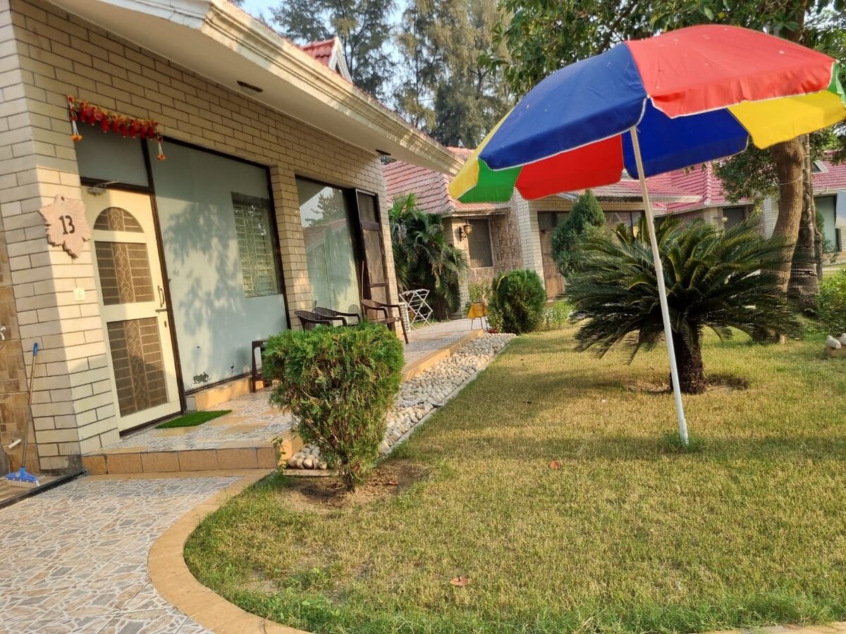 Gistu á Bhakti Vanam, aðeins 1,5 km frá hinu heilaga Prem Mandir í Vrindavan. Njóttu rúmgóðs stúdíós með loftkælingu, háhraða þráðlausu neti, sérinngangi og notalegum svölum. Fullkomið fyrir tvo gesti með aukarúmi ef þörf krefur. Hentar vel fyrir musteri og almenningssamgöngur og hægt er að útvega vespuleigu. Fullur aðgangur að vel búnu eldhúsi og hreinu þvottaherbergi. Tilvalið fyrir fjölskyldur eða ferðalanga sem eru einir á ferð og leita þæginda og friðar á andlegum stað.