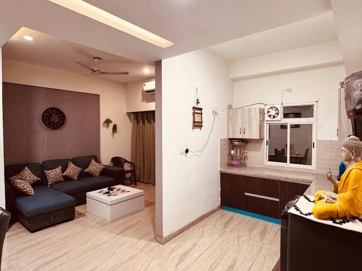 Sukoon þýðir létti, afslöppun, kyrrð eða ró. Þér mun líða eins þegar þú verður í íbúðinni okkar eftir langa ferðalagið þitt. Hreinlæti, friðsælt umhverfi, útsýni yfir 🌄garðinn af svölum☕, lúxusþægindi og hreinlæti, nær musterum - Isckon, Banke Bihariji o.s.frv., veitingastaðir, matvöruverslanir, auðvelt framboð á samgöngum og ÖRUGGT bæjarfélag eru nokkrir af hápunktum íbúðarinnar okkar. Fullkominn staður fyrir langtímagistingu. BÓKAÐU ÞVÍ NÚNA og búðu í Sukoon (friður) 😊