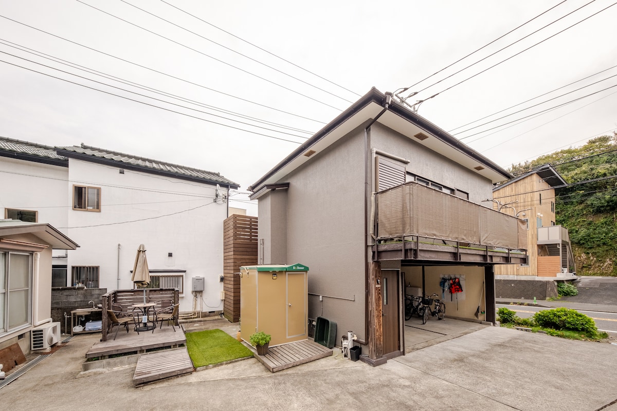 Lítið hús í göngufæri frá öllum ströndum Yusa.(Iritahama er næsta strönd, 7 mínútur að ganga / 11 m yfir sjávarmáli) Sérstaklega mælt með fyrir fólk sem hefur gaman af sjónum, eins og brimbrettum og sundi! Aðstaðan er fullbúin með þráðlausu neti og Netflix og því er hægt að nota hana fyrir langtímagistingu og sem miðstöð fyrir vinnuferðir og ferðir til Izu. Eldhúsið er með tveggja brennara ofni (gas), eldhúsáhöldum, diskum og einföldum kryddum. Við bjóðum einnig upp á fjölda ókeypis leiguhluta sem gestir geta notað.Reiðhjól, skautbretti o.s.frv. eru í boði án endurgjalds. Endilega notið þau í gönguferðum meðan á dvölinni stendur. Ef þú vilt nota grillið skaltu kynna þér húsreglurnar til að fá frekari upplýsingar. Reykingar eru ekki leyfðar í húsinu og því er ekki hægt að taka á móti aukagestum. Vinsamlegast kynntu þér húsreglurnar til að sjá hvar má reykja. Access er í 3 mínútna göngufæri frá Iritada-rútustöðinni sem er í 10 mínútna fjarlægð með rútu frá Izukyu Shimoda-stöðinni og í um 5 mínútna fjarlægð með bíl frá Izukyu Shimoda-stöðinni. Það er einnig ókeypis bílastæði á staðnum svo að þér er velkomið að koma með bíl! * Athugaðu að baðið er sturtueining utandyra.
