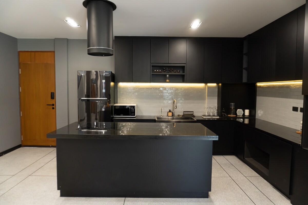 Verið velkomin í nýuppgert hús okkar aðeins 30 mínútum vestan við Bangkok! Húsið okkar er staðsett í öruggu og rúmgóðu hverfi í Bangkhae og býður upp á nútímaleg þægindi sem henta fullkomlega þeim sem ferðast um borgina. Á opinni hæð er auðvelt að hreyfa sig og stuðla að loftfimleikum með víðáttumiklum gluggum sem bjóða upp á næga dagsbirtu. Þetta er heimili þitt að heiman hvort sem þú ert að slaka á í stofunni, njóta máltíðar í borðstofunni eða slappa af í svefnherberginu.