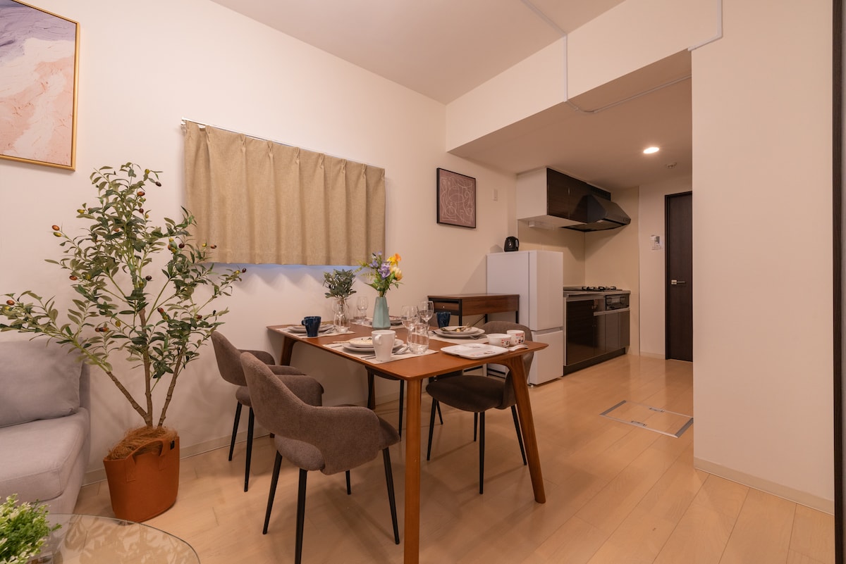 ◯ Prime Location 5 minutes from Kanayama Station, a major Nagoya hub with direct access to Nagoya Station, Sakae, and Centrair Airport – perfect for travel and business. ◯ Convenient Facilities Two shower rooms, two toilets, and two sinks – ideal for groups and families. ◯ Up to 5 Guests Two double beds and one single bed – great for families or business trips. ◯ Stylish Space Enjoy a beautifully renovated living area.