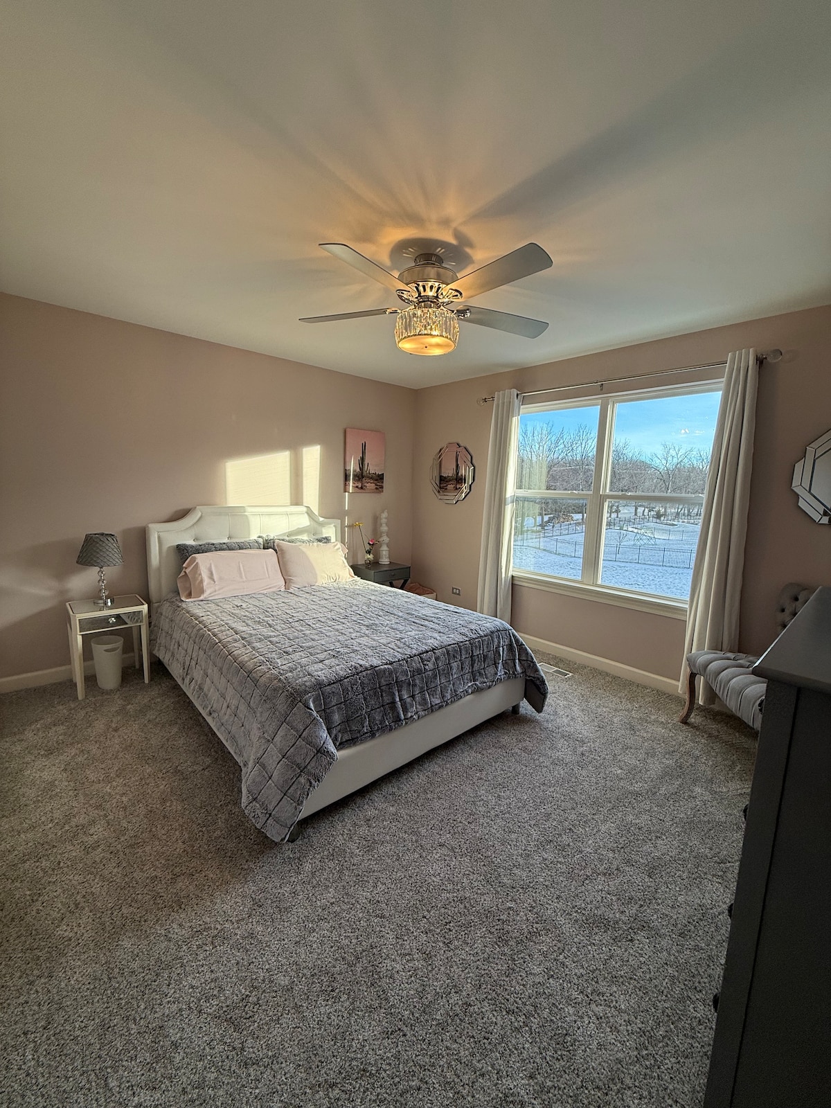 Big Red is the perfect place for large gatherings and close to downtown St Charles and Geneva. Featuring 6 bedrooms 8 beds and 3 full bathrooms. Comfortably sleep 16. The back deck features an inviting hot tub and a sofa, there’s even a patio heater for those chilly nights. The living space has a large U-shaped sofa with a large smart tv and beautiful electric fireplace. The dining table seats 10 and the kitchen island has 3 stools.
