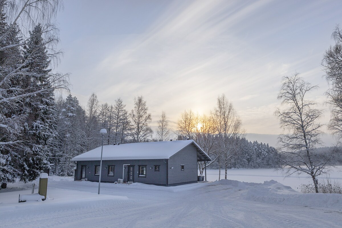 Verið velkomin í afslappandi frí við vatnið! Þessi nýja og einstaka eign við vatnið býður upp á fullkomna blöndu af nútímalegri þægindum og friðsælli náttúru. Slakaðu á í viðarhitunargufubaðinu og njóttu hressandi sunds í vatninu — eða prófaðu íssund á veturna. Skógar og göngustígar í kring eru tilvaldir fyrir útivist og rólegar stundir í náttúrunni. Auðvelt aðgengi — taktu lest frá flugvellinum í Helsinki og við sækjum þig á lestarstöðinni, aðeins 9 km frá eigninni.