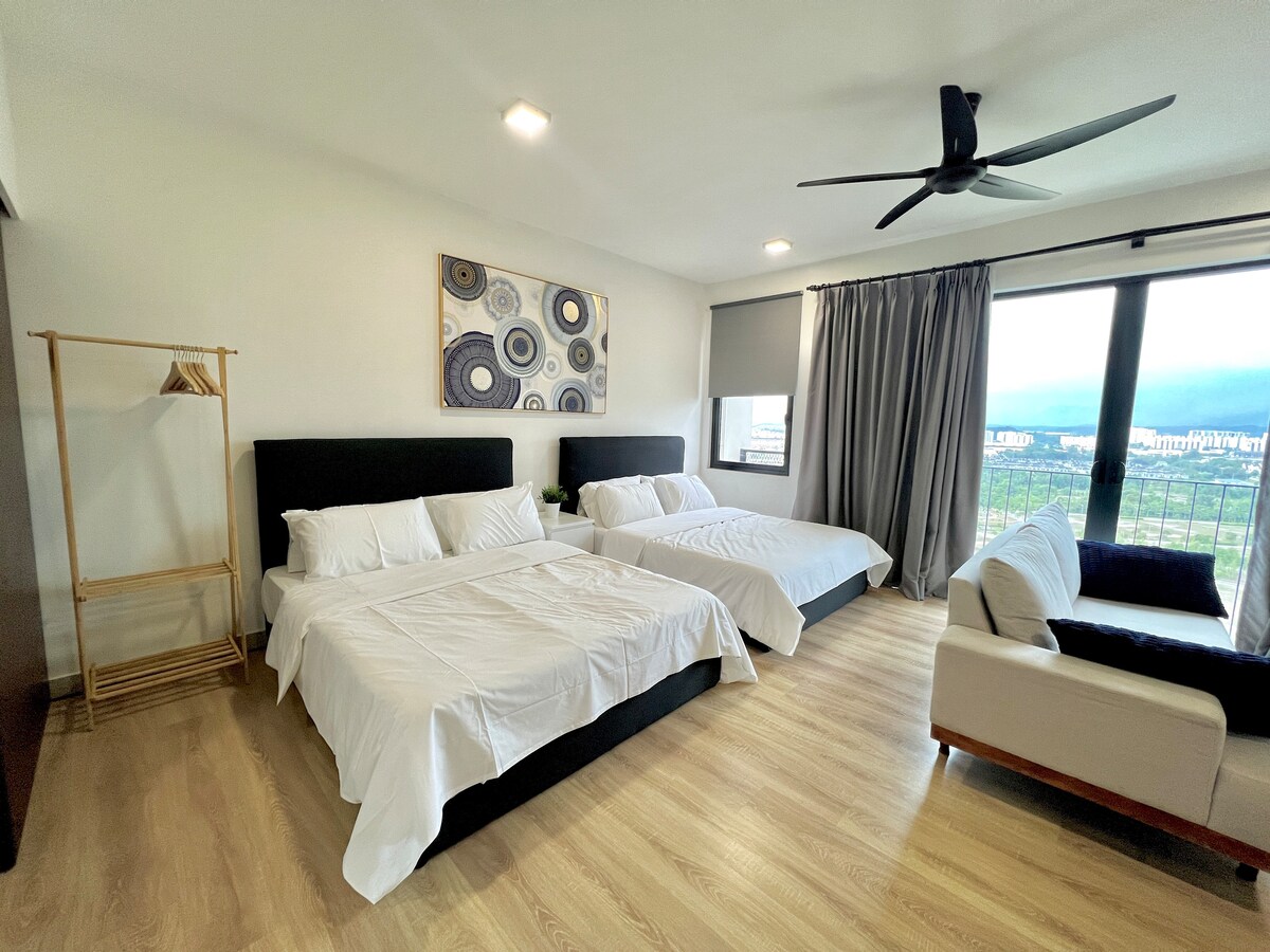 Verið velkomin í notalegu og nútímalegu stúdíóið okkar með svölum í Trefoil, Setia Alam. Fullkomið fyrir pör, einstaklinga eða vinnuferðamenn. Útsýni frá svölum • Rúm í queen-stærð • Snjallsjónvarp með Netflix • Háhraðaþráðlaust net Fullbúið eldhúskrókur • Ókeypis bílastæði • Auðveld sjálfsinnritun 3 mínútna göngufjarlægð frá Setia City Mall OG Setia City Convention Centre (SCCC) 5 mínútna akstur að Setia Alam Night Market og Sunsuria Forum@ 7th Avenue Slakaðu á með kvikmynd eða kaffi á svölunum — friðsælli afdrepur þinn 🍃