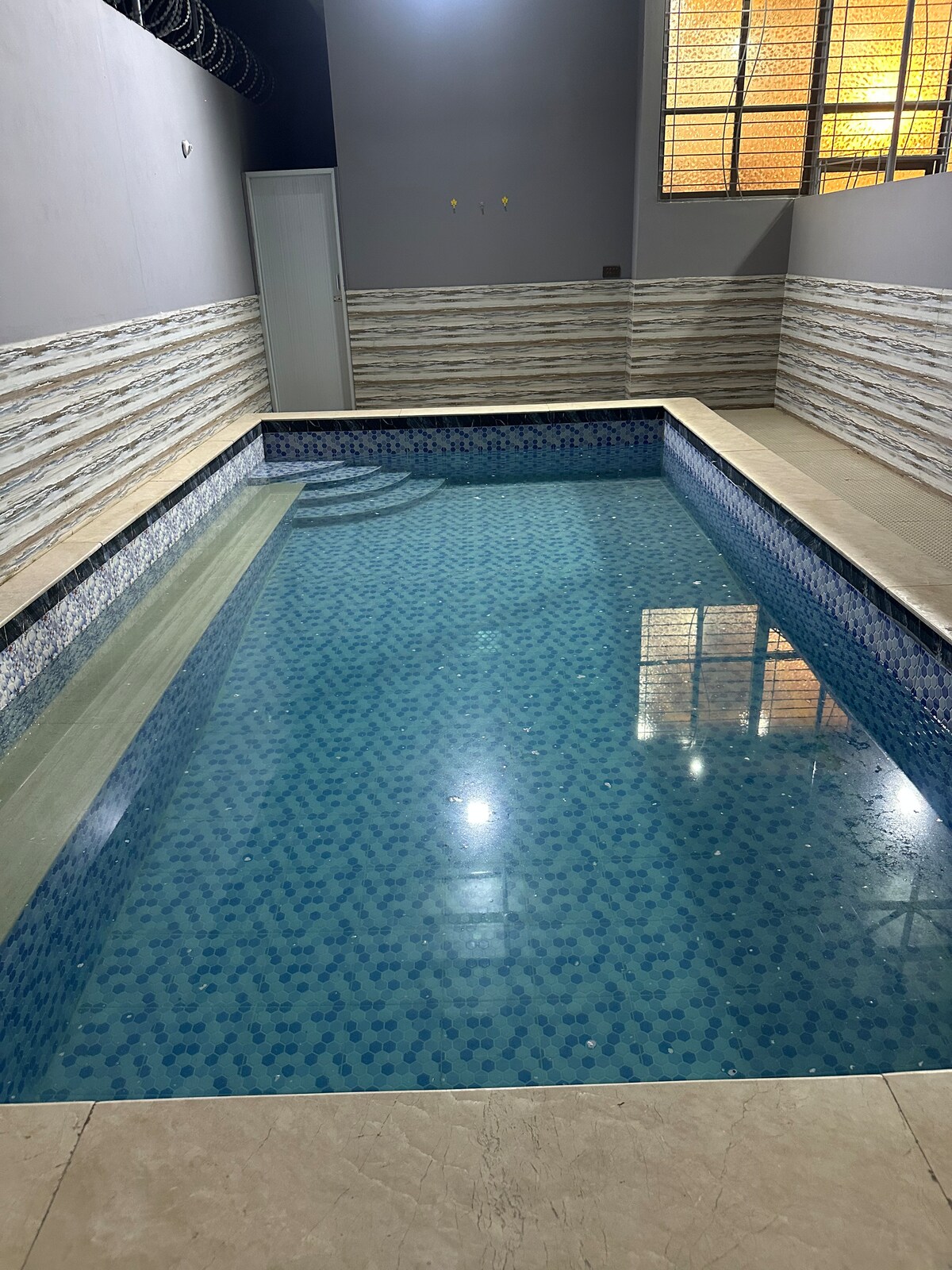 Located only 5 minutes from Malir Cantt and 10 minutes from Scheme 33, An ideal escape for families looking for comfort, fun, and relaxation without traveling far. Packed with entertainment for all ages. Enjoy two swimming pools – adults and kids – along with a variety of indoor games. Lush green lawn and exotic birds. Luxurious rooms, a media wall with Netflix, and a fully equipped American-style kitchen with modern facilities, making it perfect for family gatherings or small group getaways.