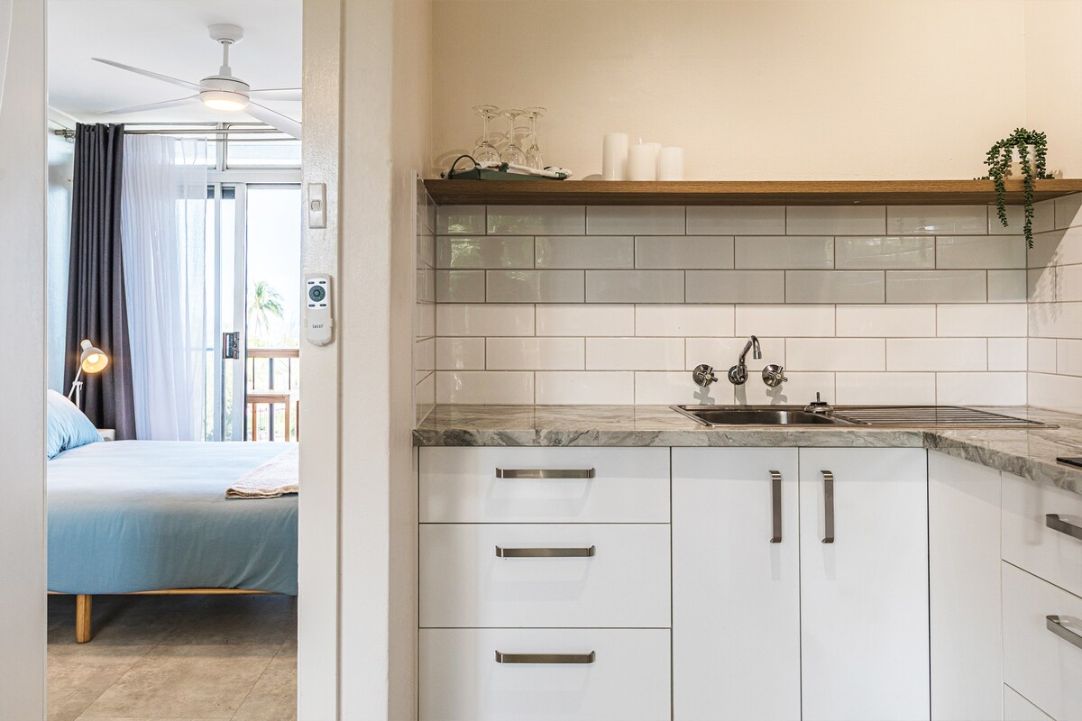 Komdu og gistu í nútímalegri, vel skipulagðri íbúð nálægt flugvellinum og gakktu handan hornsins að strætóstoppistöðvum að frábærum stöðum á staðnum. Við útidyrnar er sætasti litli dýragarðurinn -Crocodylus Park - heimili innfæddra dýra, stórra katta og krókódíla! Stökktu upp í strætó til að versla eða stökktu til Uber í einn dag á ströndinni þar sem þú getur fylgst með sólsetrinu og borðað á einum af fjölmörgum matsölustöðum við götuna. Aircon, eigin þvottahús og tveir hundar vafðir til að prófa hvaða fallandi snarl!
