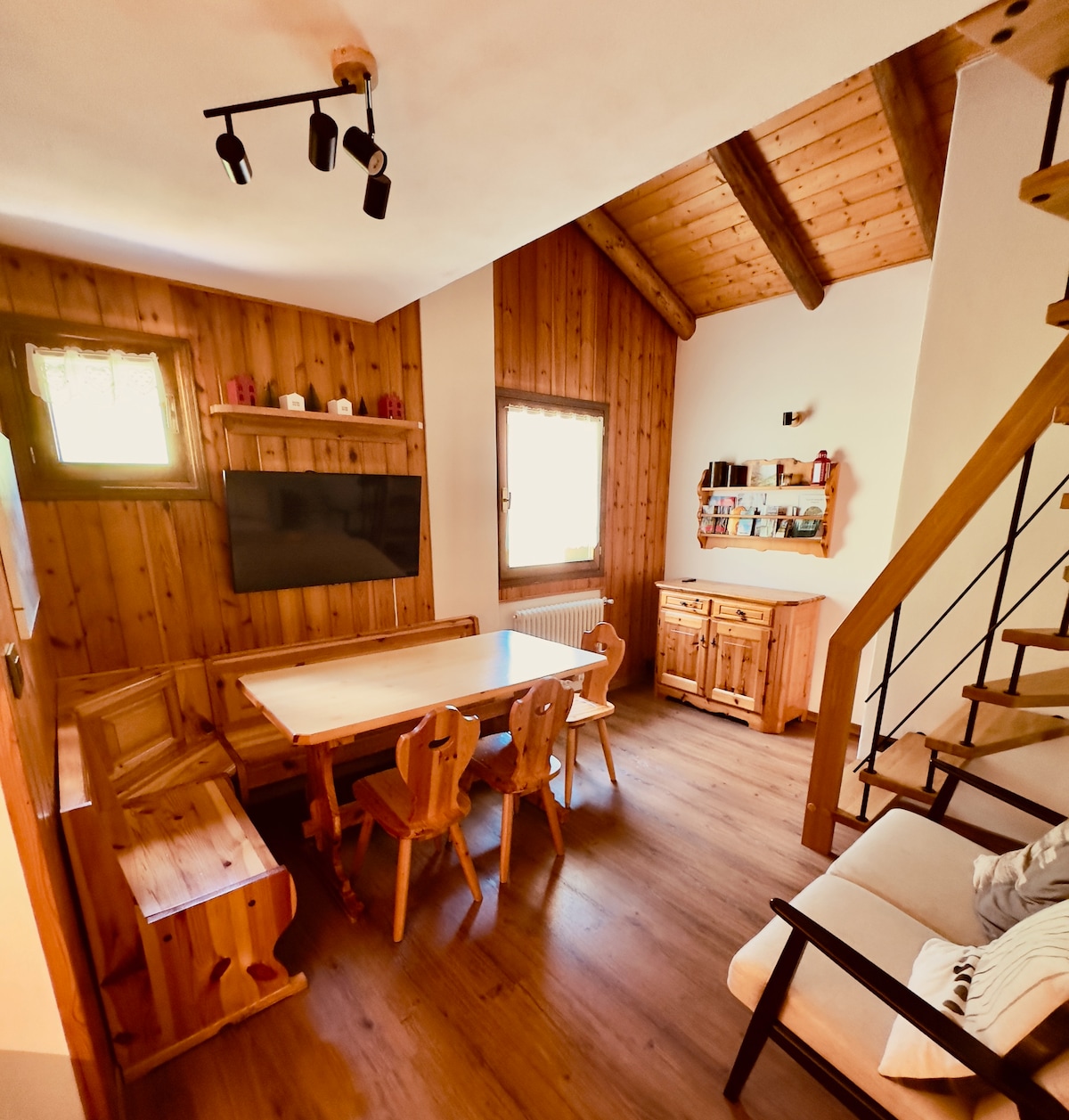 Björt og notaleg þakíbúð í Moena, í hjarta Val di Fassa, með stórkostlegu útsýni yfir Dolomítafjöllin. Búið eldhúsi, stofu, 2 svefnherbergjum, 2 baðherbergjum með gluggum (eitt með baðherbergi) og 2 víðáttumiklum svölum. Frábært fyrir afslöngun og útivist: skíði, gönguferðir, hjólreiðar. Nálægt brekkunum (skífa fyrir neðan húsið) og göngustígum. Í dalnum þar sem vetrarólympíuleikarnir eru haldnir, á milli náttúru, íþrótta og hefðar. Hvert smáatriði er hannað fyrir þægindi og slökun, bæði fyrir pör og fjölskyldur.
