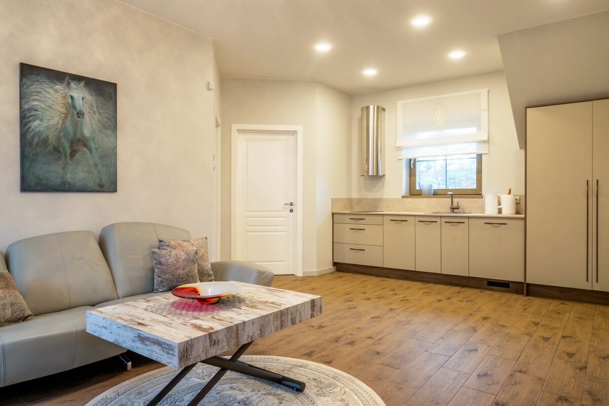 Enjoy this amazing new renovated apartment in center of Palanga. We are less than one km form the main seaside, less than 500 meters from the cozy local farmers market where you can get freshly baked bread, vegetables as well as fruits. The 8 min walking distance is situated to the main entertainment Basanavicius street. Living in our apartment you can enjoy the peaceful and calm neighborhood and also reach by foot all of the resort entertainments.