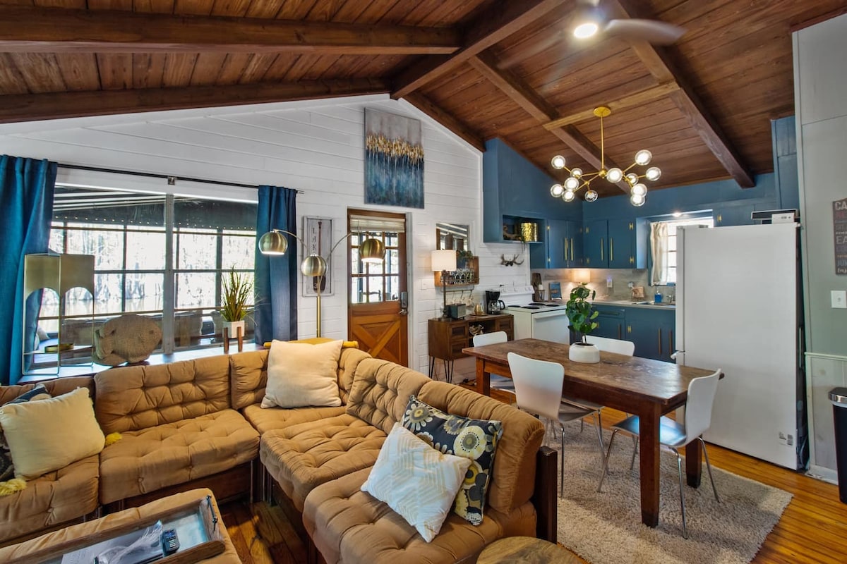 ➪ No Pets / Not Kid friendly mesg for info ➪ Starlink / Waterfront w/ dock + Lake Access ➪ Screened-in porch w/ fire pit + lake views ➪ Patio w/ BBQ + stone fire pit ➪ 2 Kayaks + paddles + life vest ➪ Master suite king + bathroom + 55” TV ➪ Master suite queen + bathroom + 32” TV ➪ Boathouse + boat trailer parking ➪ 42” smart TV’s w/ Netflix + Roku ➪ Parking → carport (2 cars) ➪ On site generator 2 mins → Cafes + dining 7 mins → Caddo Lake State Park