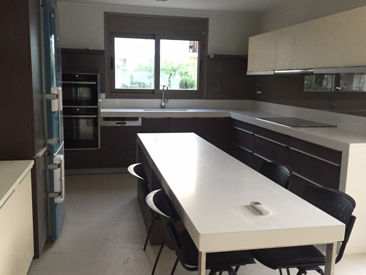 Gaman að fá þig í draumavilluna þína sem er byggð í snertingu við klettamyndun! Þetta híbýli býður upp á tvö svefnherbergi með sér baðherbergi. (1 með auka svefnsófa) Villan er staðsett á 6000m2 lóð sem er full af furutrjám og ólífulundum. Nokkrar tröppur liggja niður að afskekktu ströndinni þinni. Eldhúsið og borðstofan í aithrio eru með yfirgripsmikið sjávarútsýni. Útisvæðin sem eru 120 m2 að stærð eru með setusvæði sem er varið með skyggingu á pergola,sólbekkir sem er matsölustaður utandyra,grill og sturta