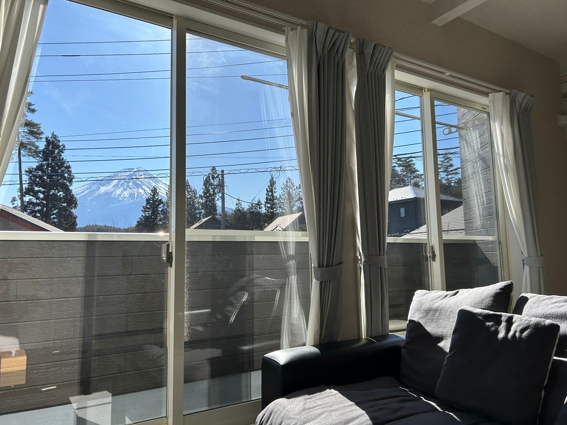 Fjallið Fuji í snjó! Hvaða gistingu viltu sjá? Frá rúminu? ... úr baðkerinu? COCON Fuji B-bygging
